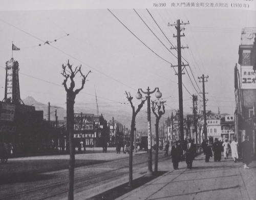 | 1930年頃 南大門外より南大門を望む / 京城駅から南大門を眺める 南大門内より商品陳列館を見る / 南大門通3丁目 南大門通りから黄金町通へ / 南大門付近3枚(1930年) |