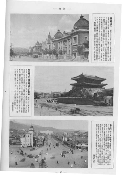 | 日本の朝鮮統治を検証するには、現代の価値観から日本統治時代を非難するのではなく、当時の時代背景を考慮して、李朝時代から日本統治時代になって何がどう変わったかを批評すべきだ。その意味で南大門は、ソウルのランドマーク的建造物なので写真が数多く残っており視覚的な比較に適している。 |